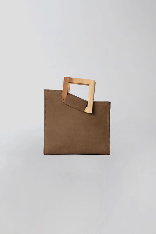 Round wooden handle and soft leather make the Solaro Bag a practical yet stylish clutch...