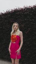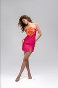A mini strapless design with a striking orange flower detail, the Noicattaro Dress features a fitted silhouette and a lace-up back.