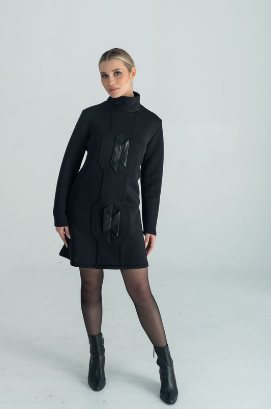 Long sleeve turtleneck Fasano Dress with diamond-shaped cutouts symmetrically arranged at the midsection highlights the...
