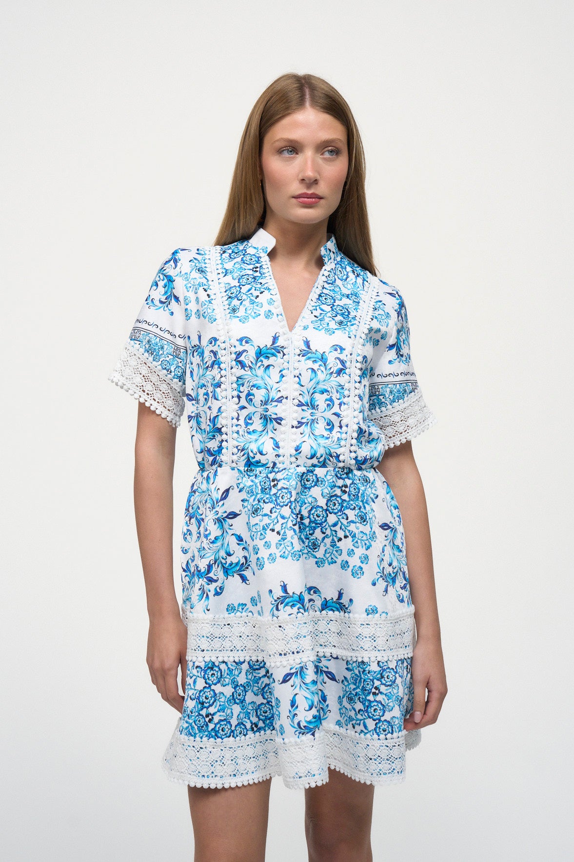 Crafted from lightweight cotton, the Mola di Bari Dress features short sleeves and a guipure design, perfect for casual or special occasions.