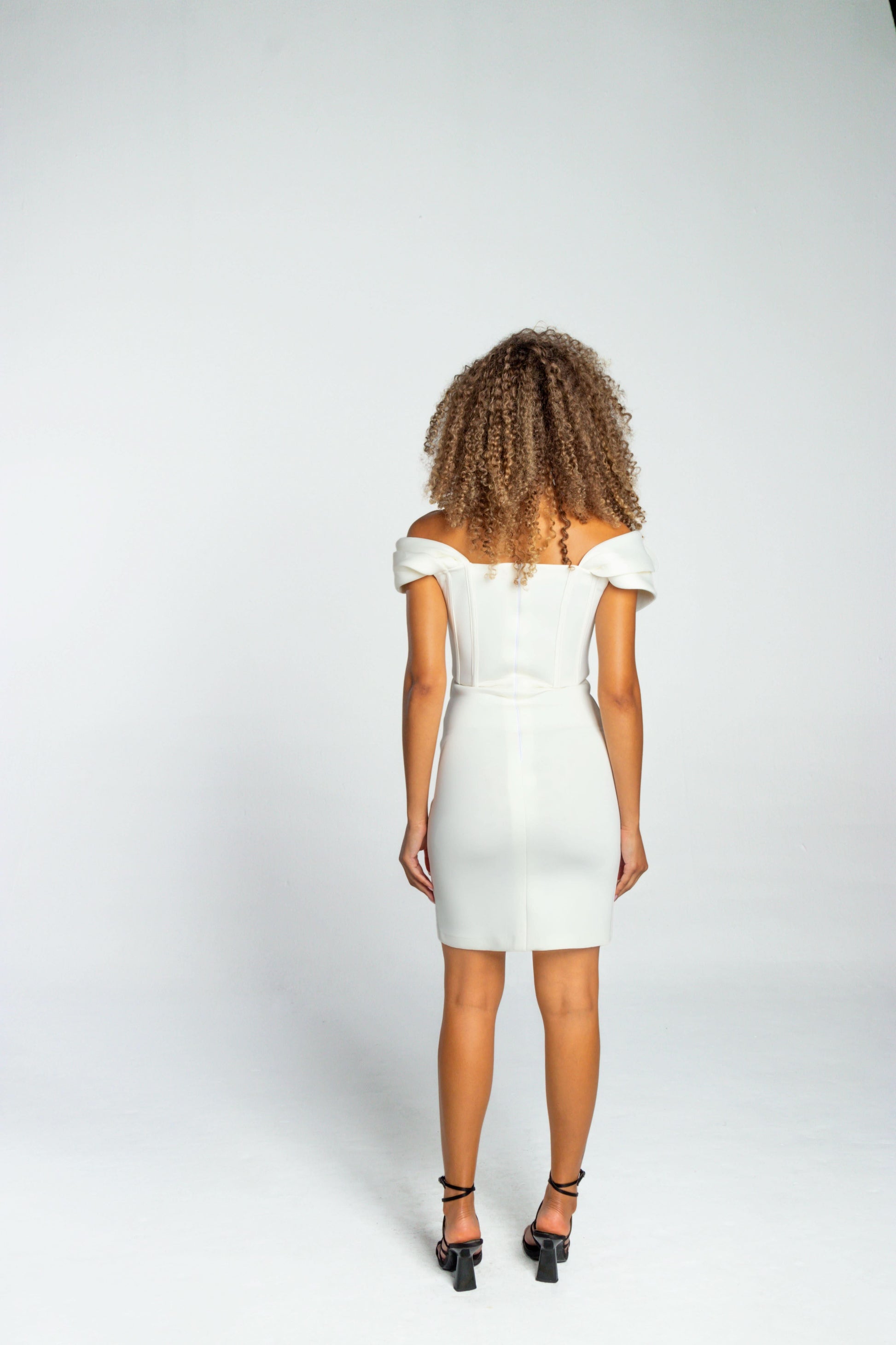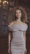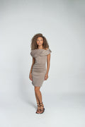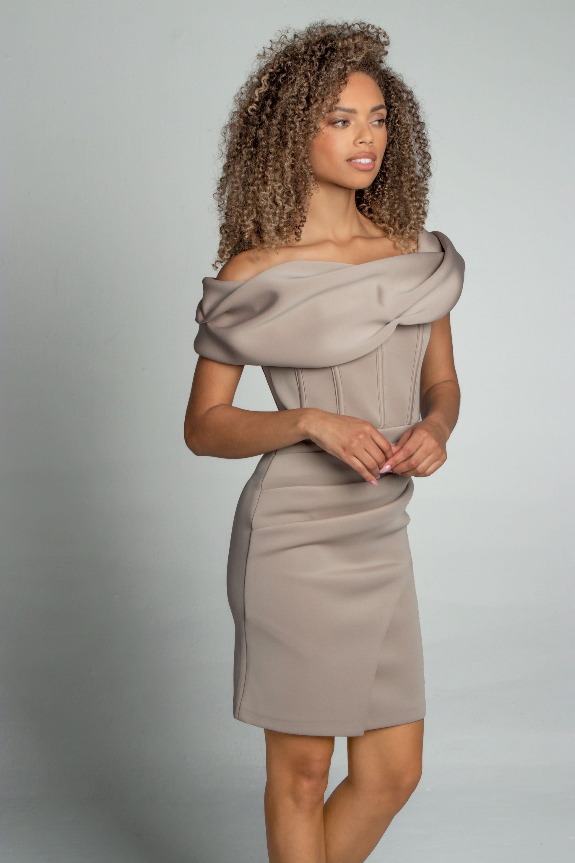 La robe Naples est un choix étonnant pour toute occasion qui nécessite une touche de sophistication et de glamour. Le design à épaules dénudées crée une silhouette flatteuse et élégante, tandis que l'encolure drapée et rabattable ajoute un détail unique et élégant.