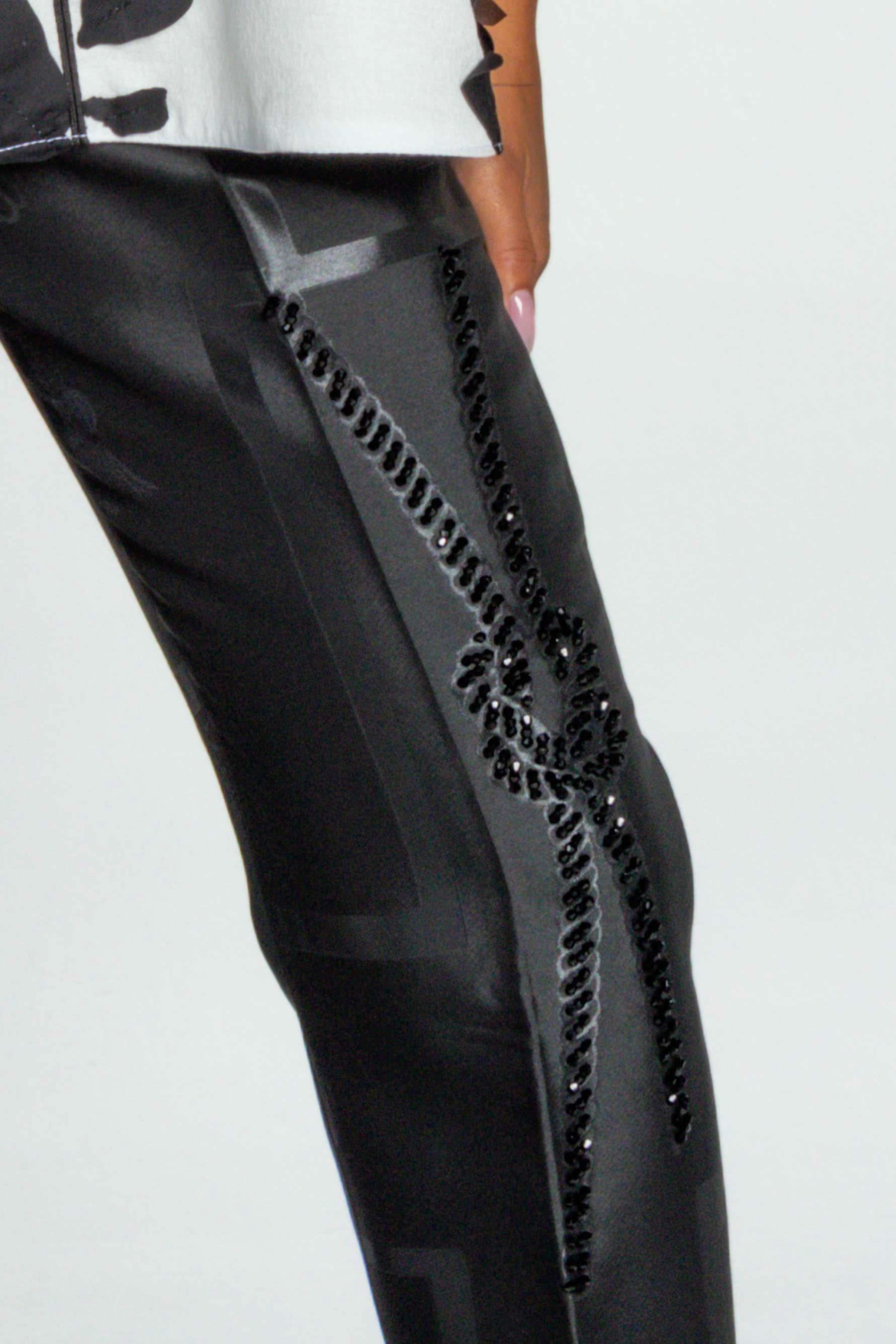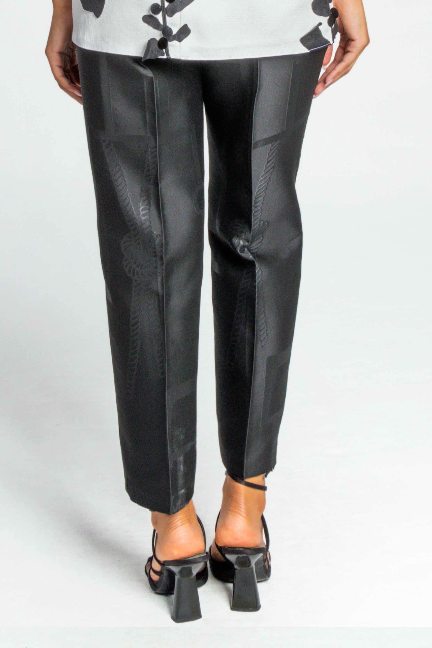 Ce pantalon Perugia fera passer votre look au niveau supérieur avec sa coupe slim et son design noir tressé. Parfait pour votre garde-robe de jour comme de nuit, ce pantalon élégant fait une déclaration sans sacrifier le confort.