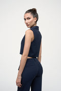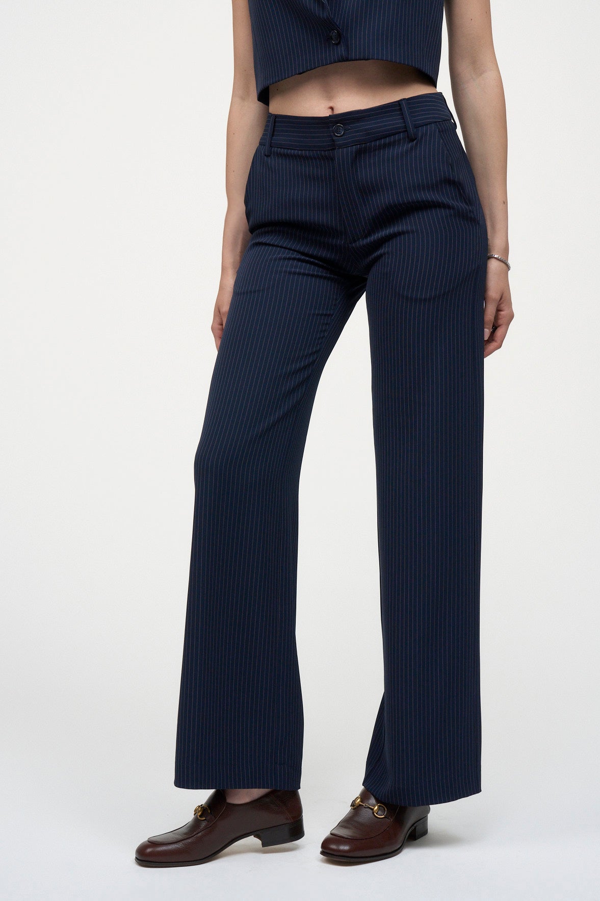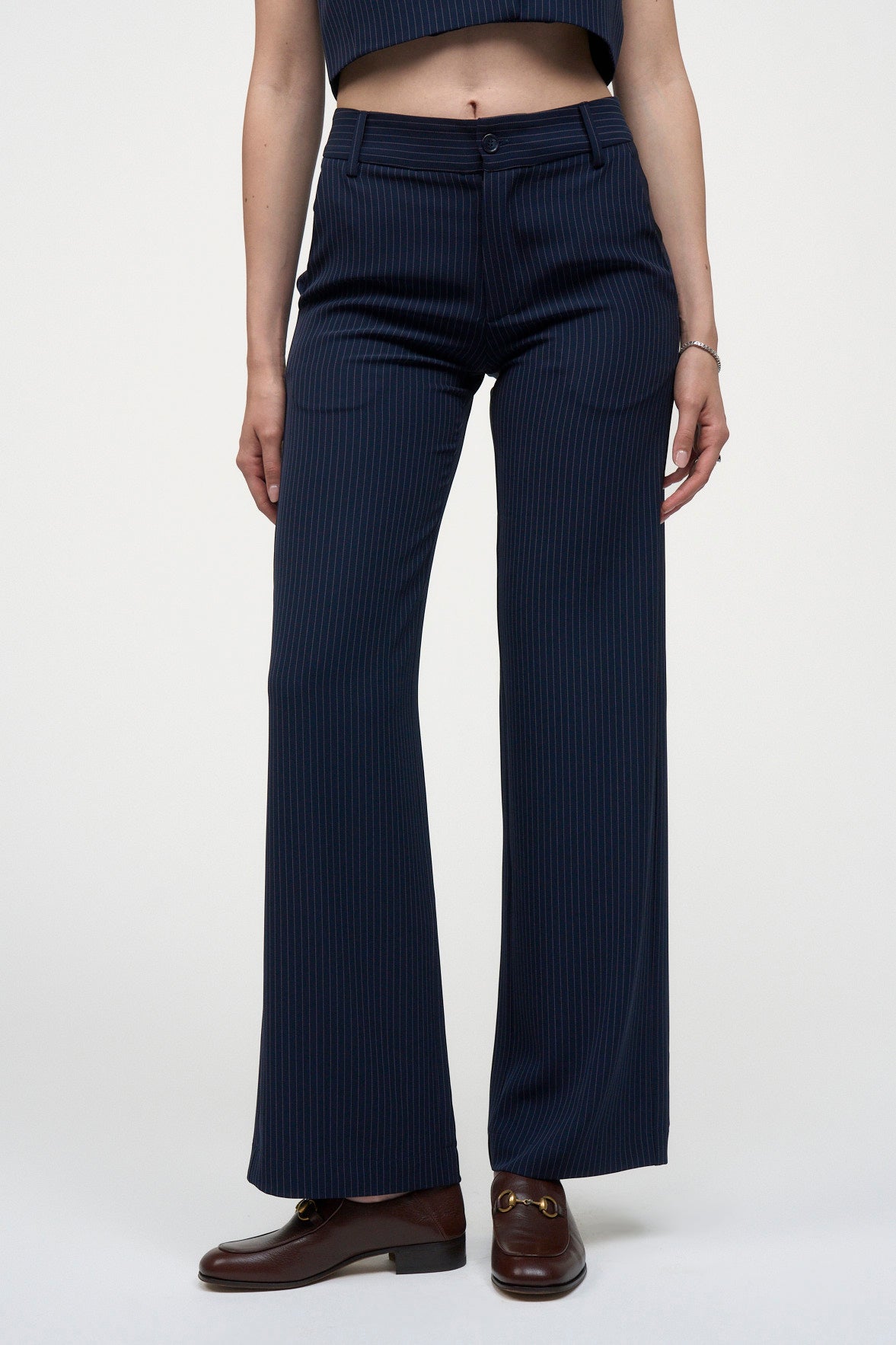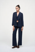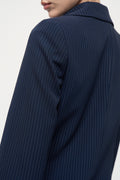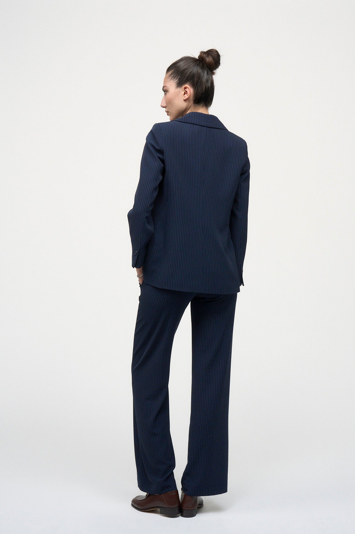 Tailored sophistication redefined — this 3-piece pinstripe set features a cropped double-breasted blazer, structured vest, and wide-leg trousers for a look that’s equal parts bold and timeless. The sharp tailoring and subtle vertical stripes elongate the silhouette, while the cropped cut adds a modern, feminine edge. Perfect for power meetings or elevated evenings, this set embodies effortless confidence and refined minimalism.