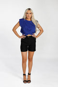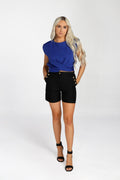 With a subtle textured pattern and a high-waist cut, the Gela Short is accented by ornamental gold buttons on the side, combining comfort and a tailored fit.