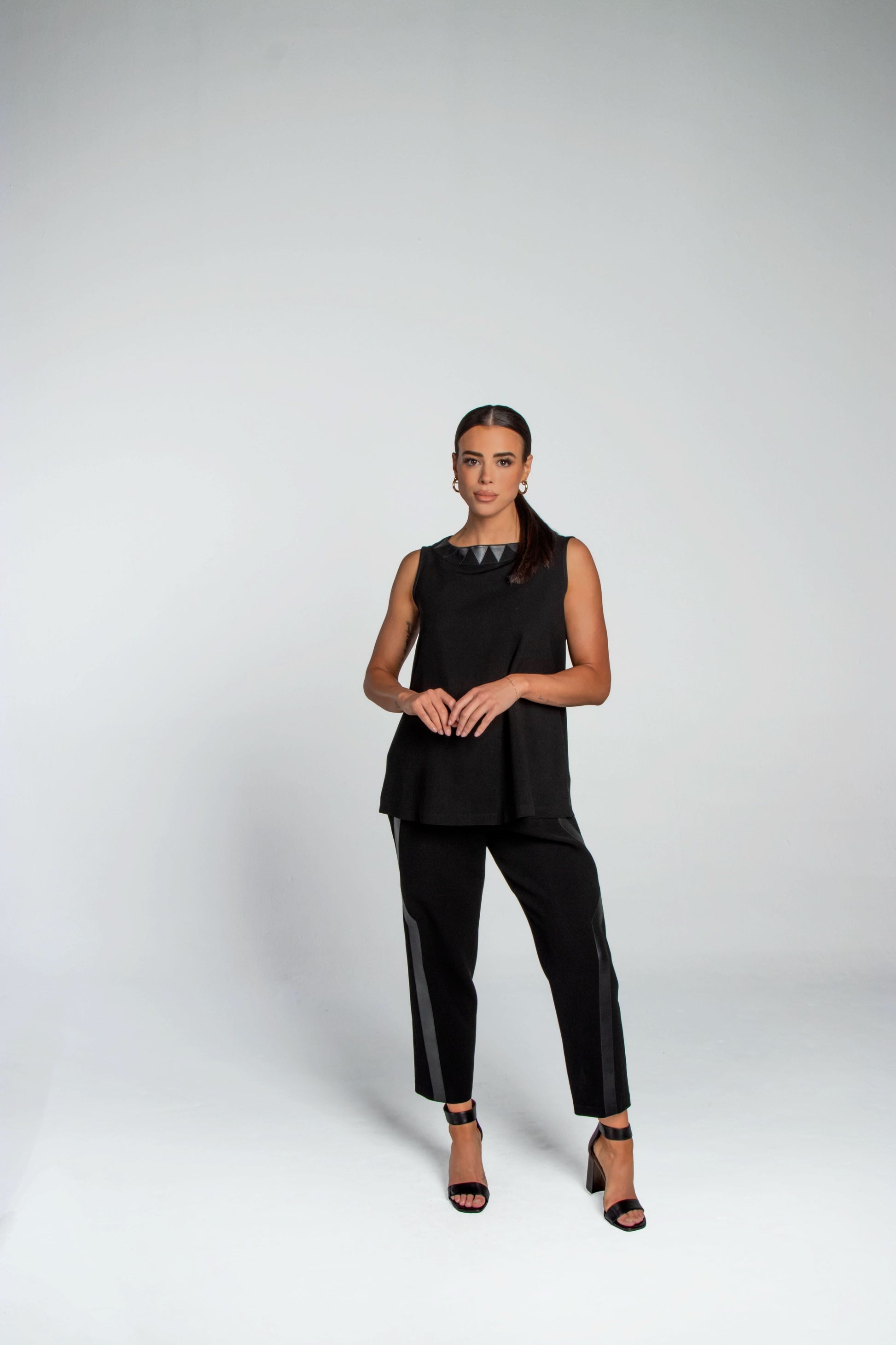 Satin Reggio Emilia Pants offer a smooth texture and high-waisted fit, suitable for work, formal events, or casual days.