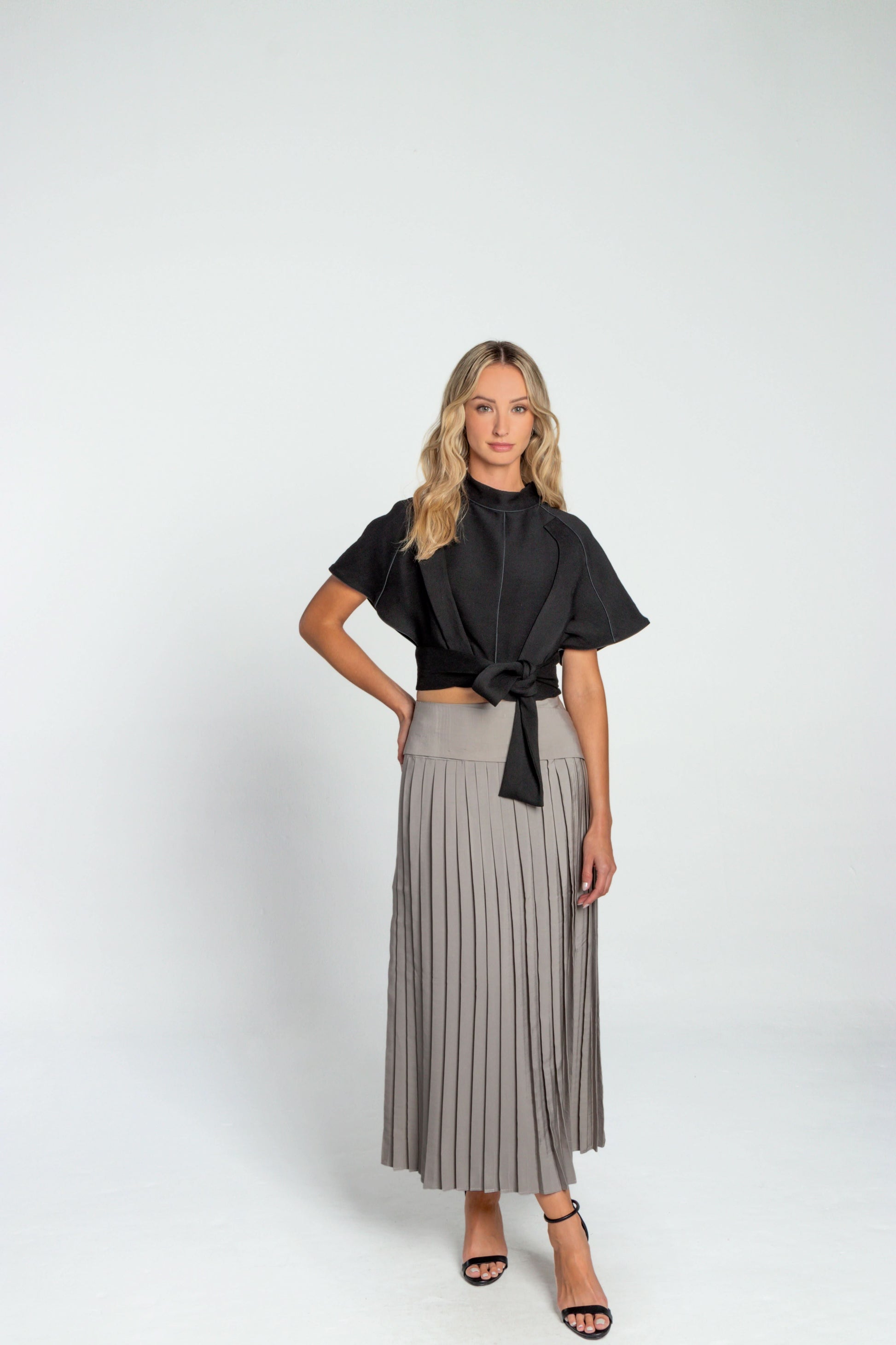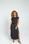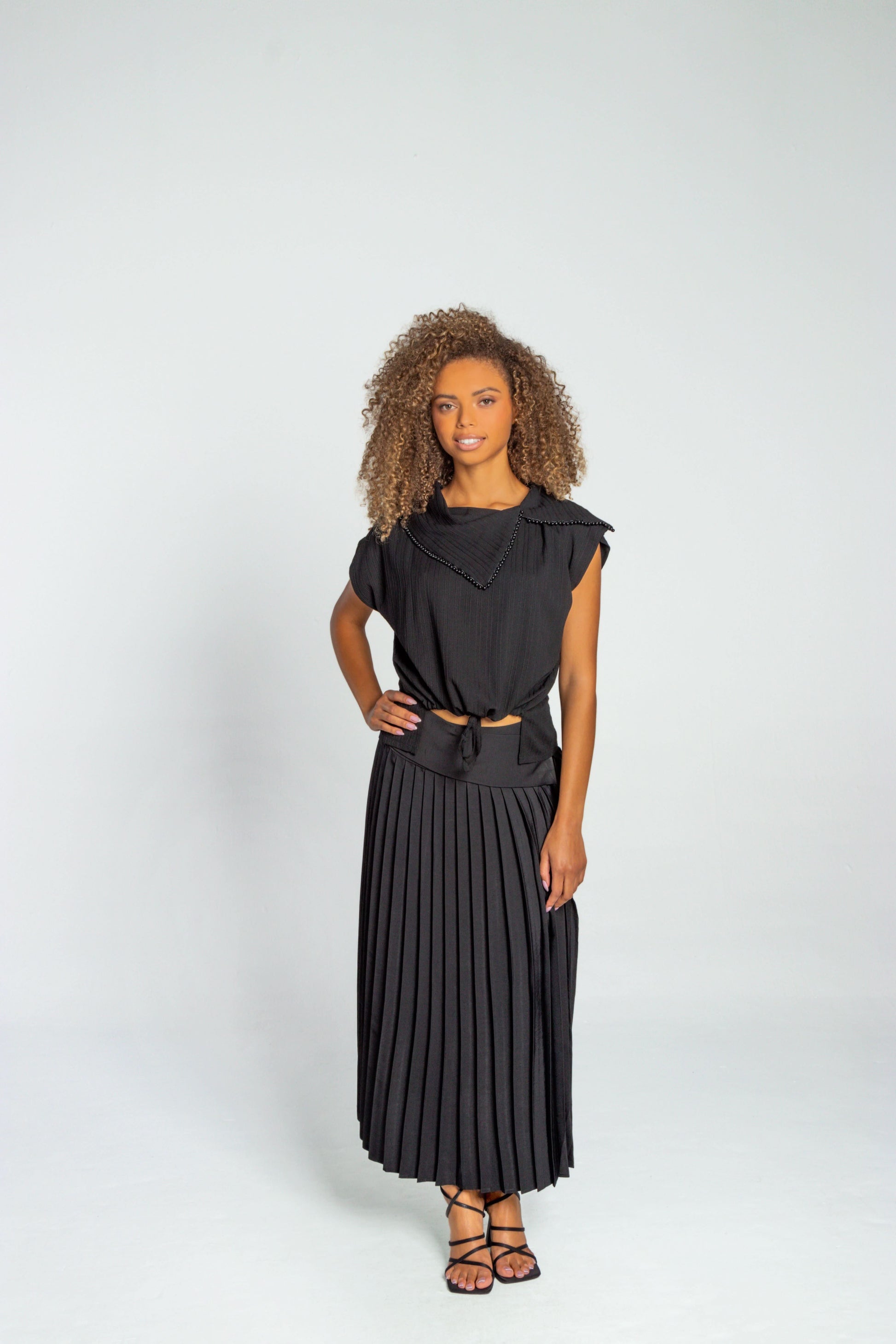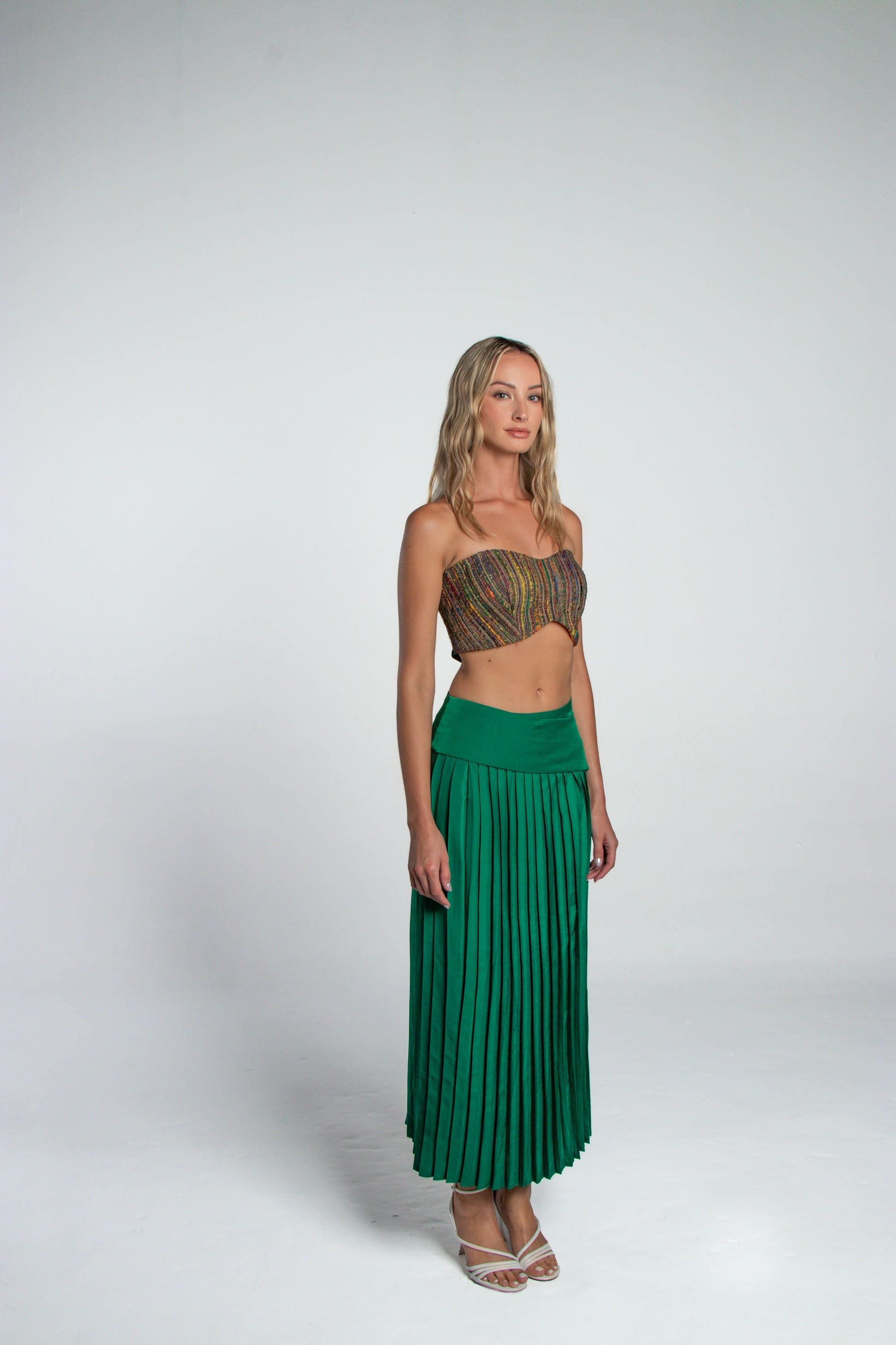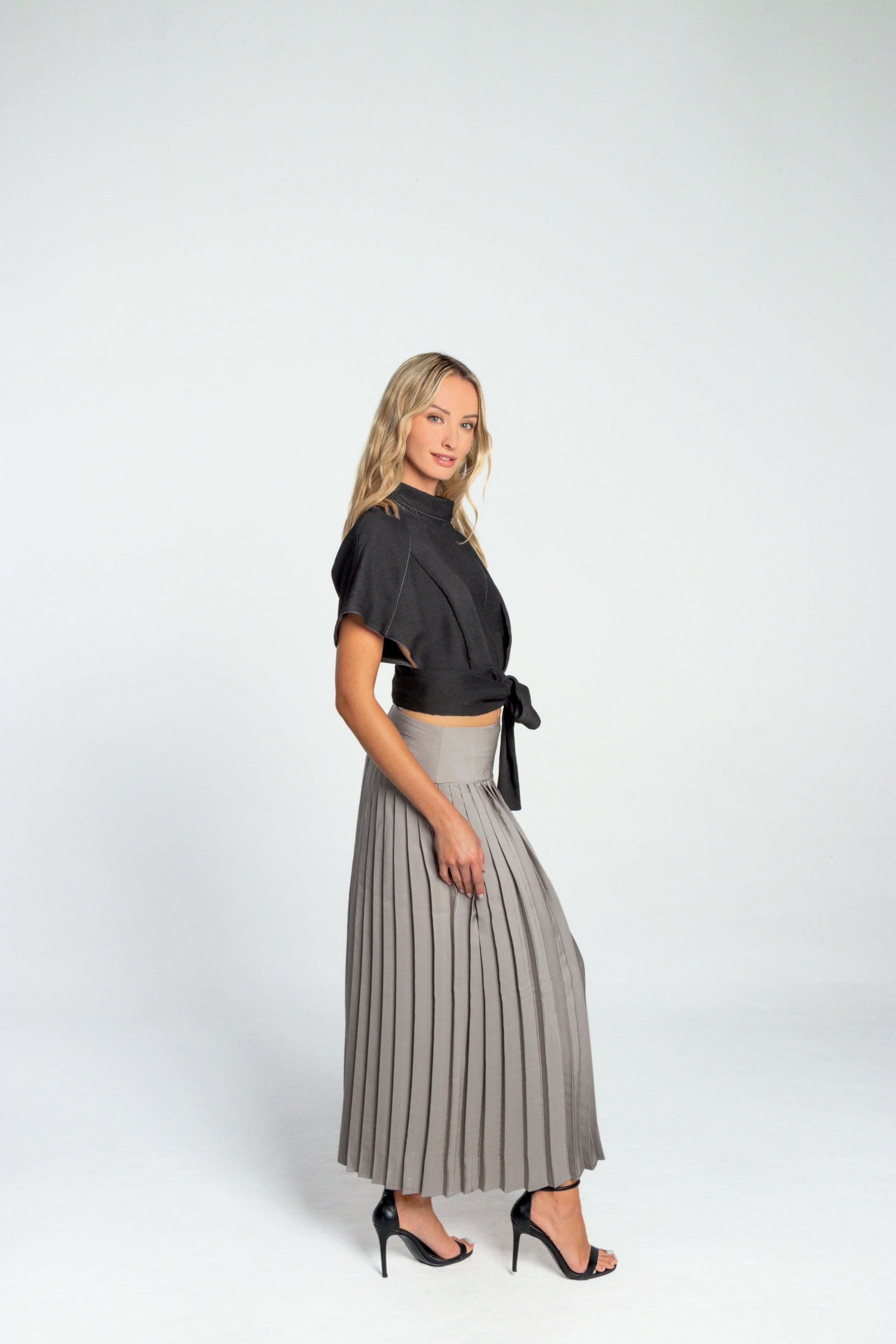 The long pleated design of the Rho Skirt, in multiple colors, adds a touch of freshness and elegance to your outfit, with a high-waisted fit that flatters your figure.