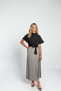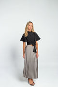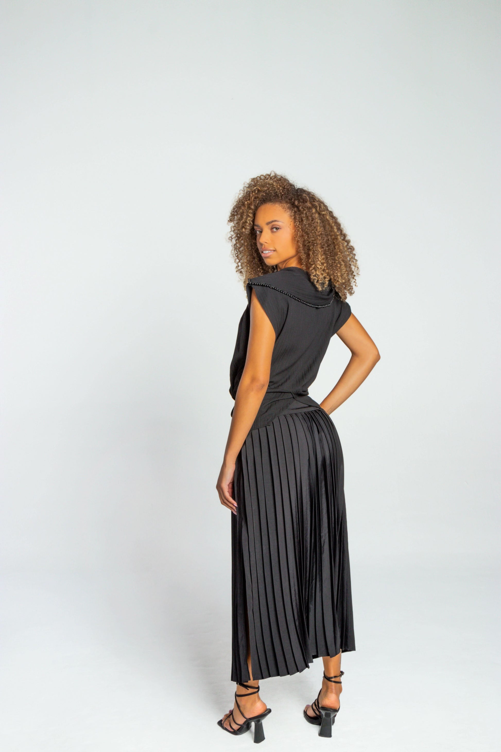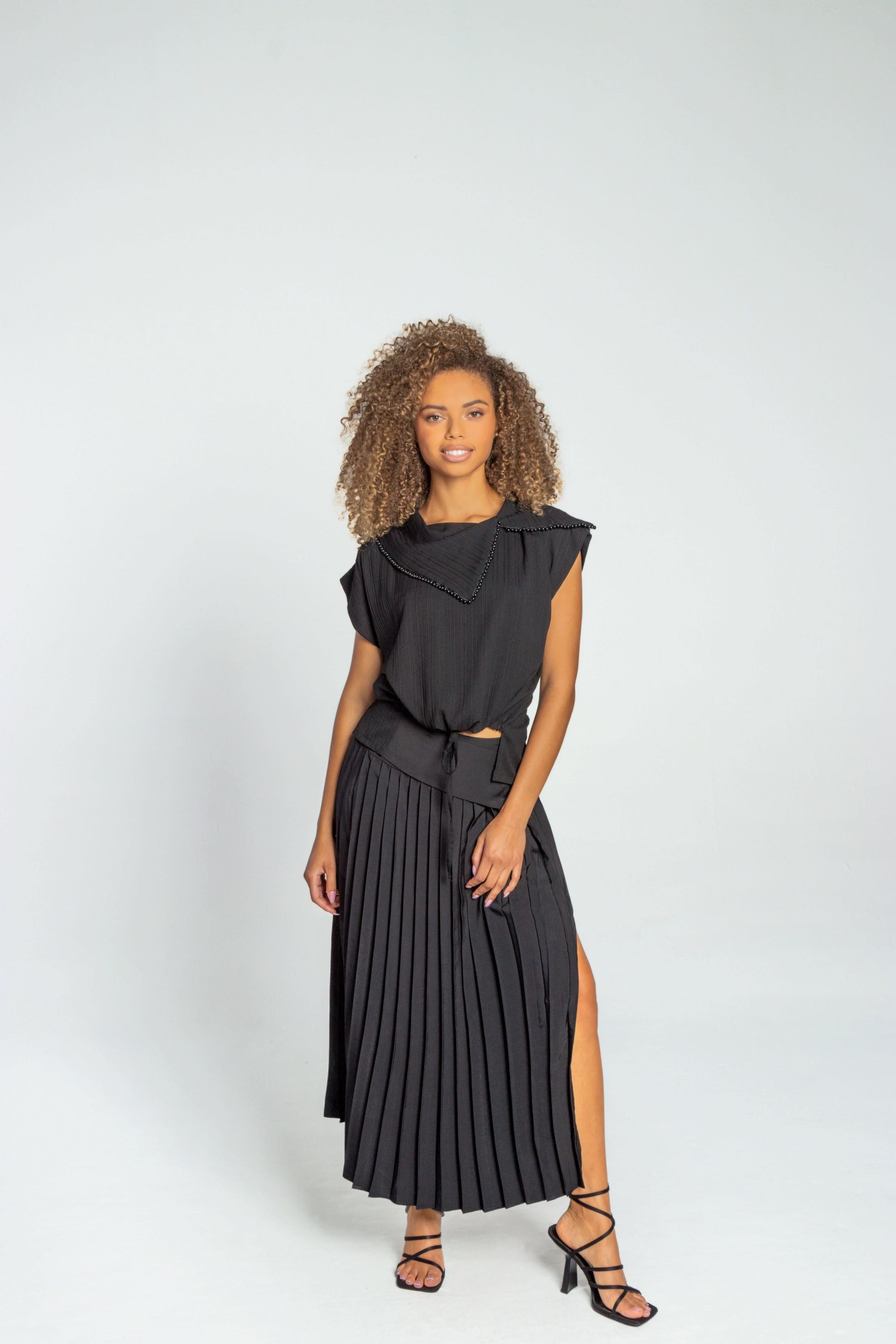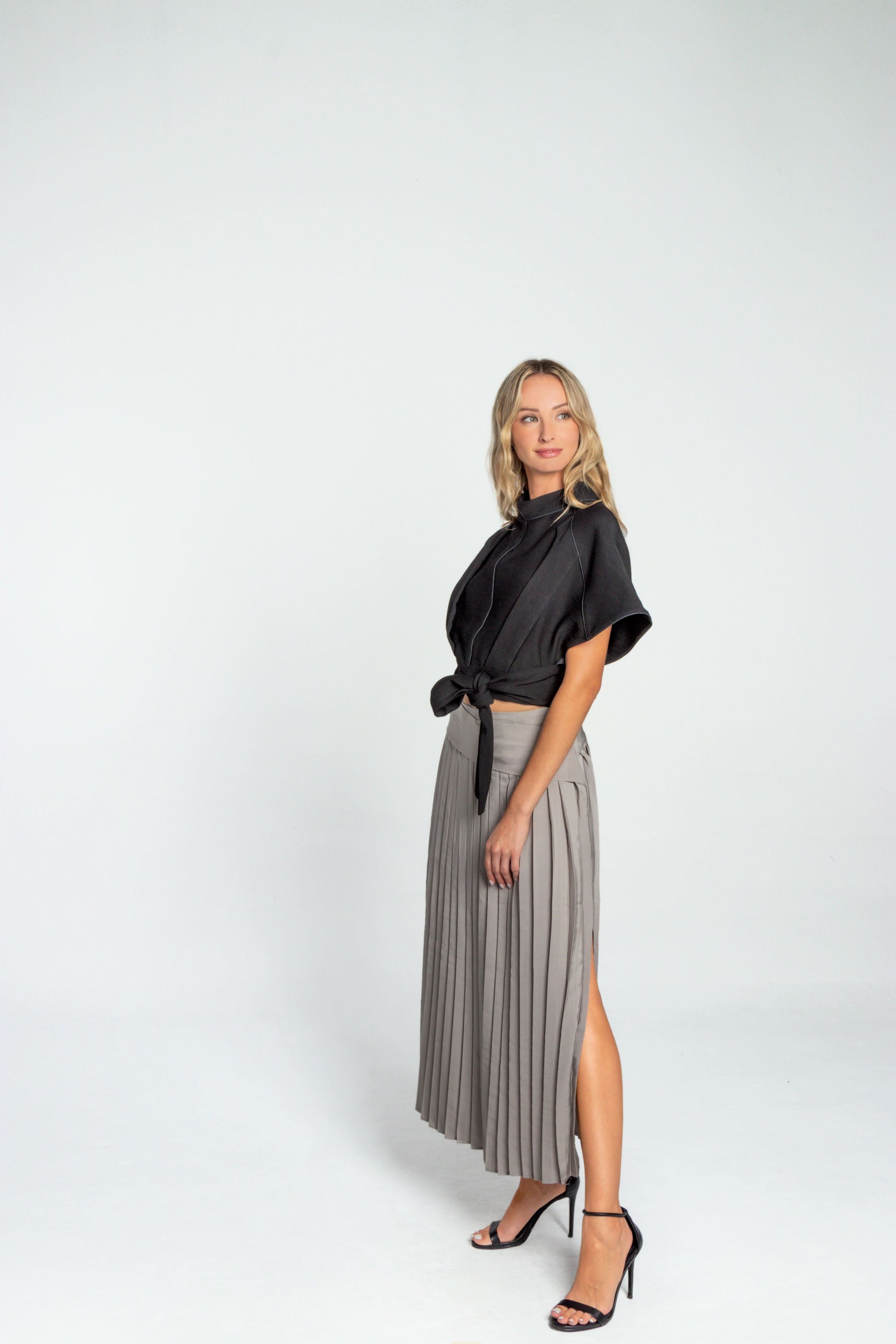 The long pleated design of the Rho Skirt, in multiple colors, adds a touch of freshness and elegance to your outfit, with a high-waisted fit that flatters your figure.