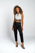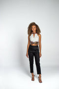 Salerno Pants in black with a high-waisted fit provide a bold and versatile look with an edgy design.